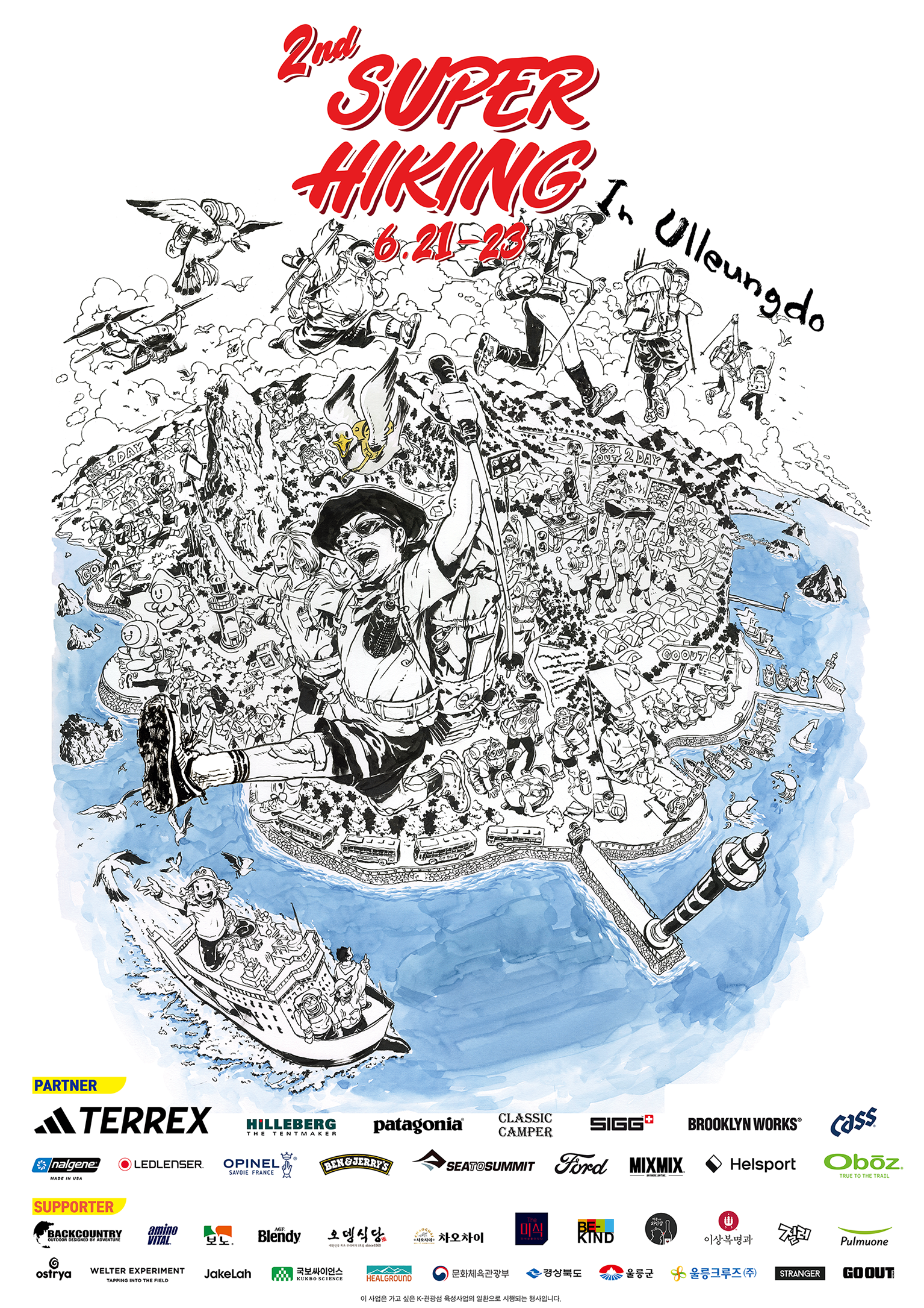 신비의 섬 울릉도에서 열린 두 번째 <고아웃> 슈퍼하이킹. 아름다운 산과 바다를 배경으로 천혜의 자연과 함께했던 고아웃 슈퍼하이킹은 도전과 힐링을 동시에 경험할 수 있는 시간이었습니다. 전국 각지에서 모인 참가자와 아웃도어 관련 F&B 브랜드 관계자 약 500여 명이 참여해 2박 3일간 20.5km의 코스를 함께 걸으며, 울릉도의 자연을 만끽했습니다. 약 30여 개 브랜드가 스폰서십으로 참여해 다양한 프로그램과 이벤트, 그리고 하이커들을 위한 푸짐한 선물을 증정했습니다.